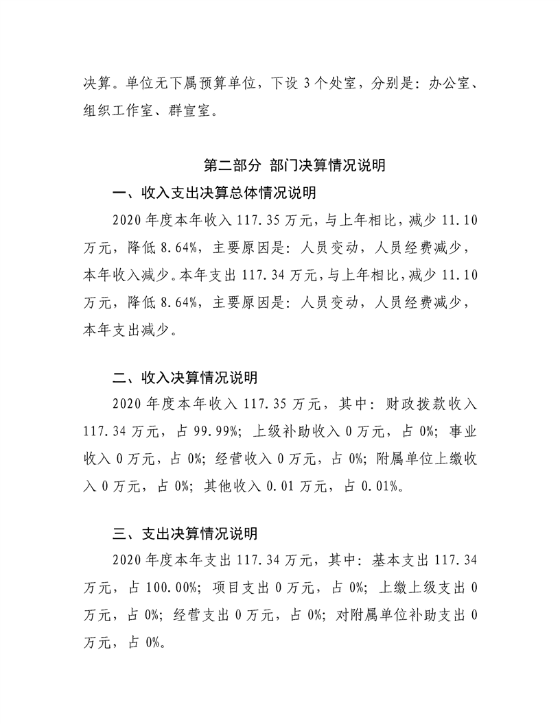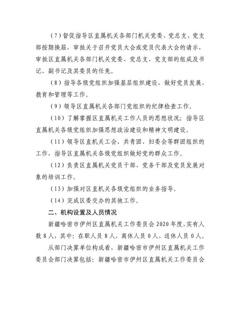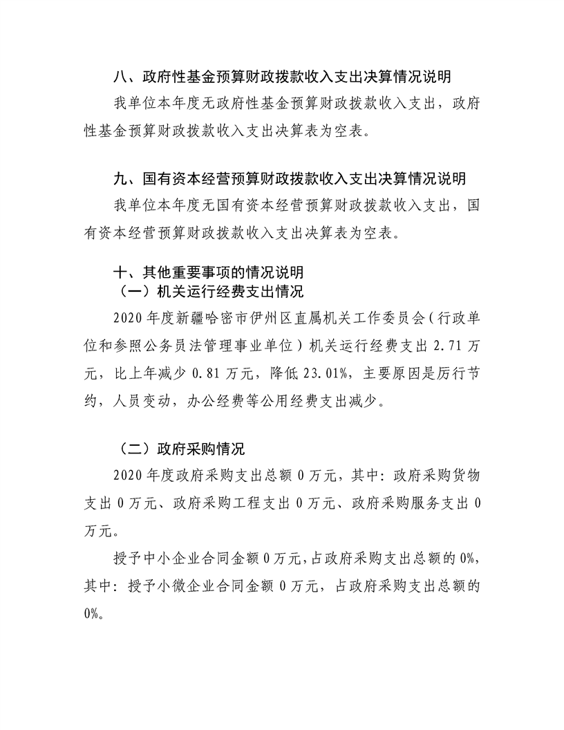 哈密市伊州区直属机关工作委员会2020年度部门决算公开说明