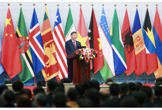金秋时节,天朗气清。国家会议中心会场内,各国国旗和联合国旗帜组成恢弘旗阵。