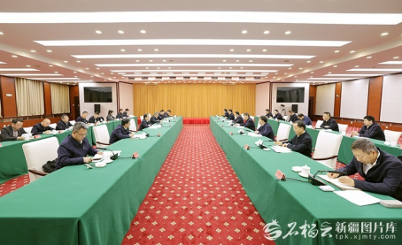 12月17日,自治区党委书记陈小江、自治区主席艾尔肯·吐尼亚孜在乌鲁木齐会见中国长江三峡集团董事长刘伟平、总经理李富民一行。石榴云/新疆日报记者崔志坚摄