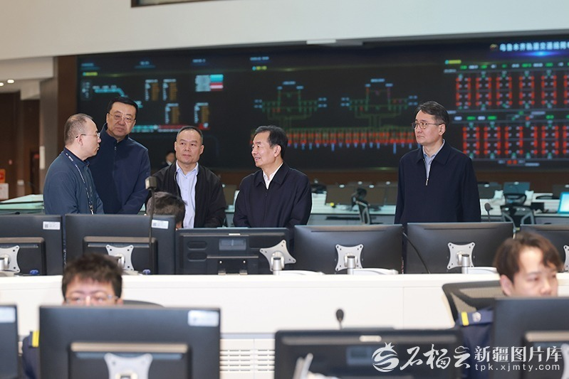 2月20日,自治区党委书记陈小江在自治区应急管理综合监测预警中心,慰问坚守岗位的干部职工,详细听取节日值班值守、应急备勤、重点领域隐患排查整治情况介绍。石榴云/新疆日报记者崔志坚摄
