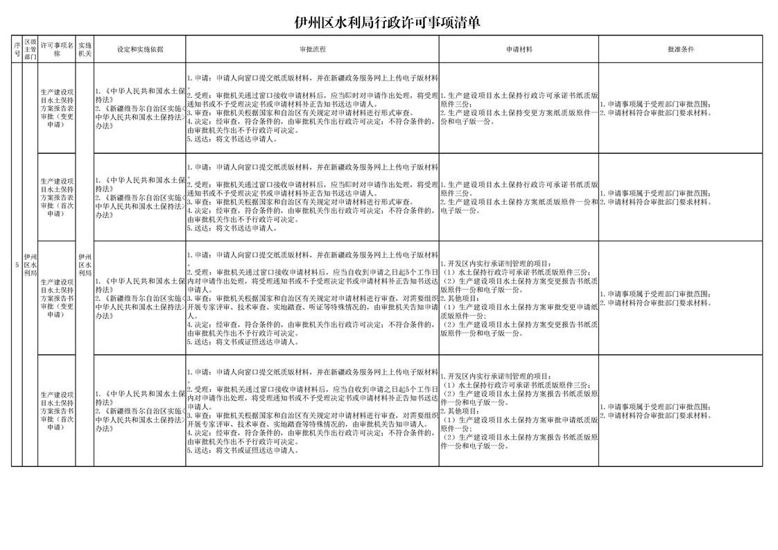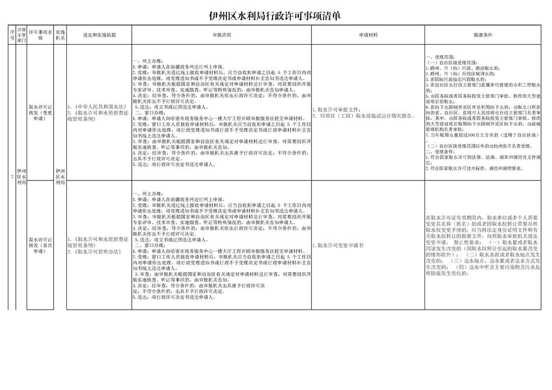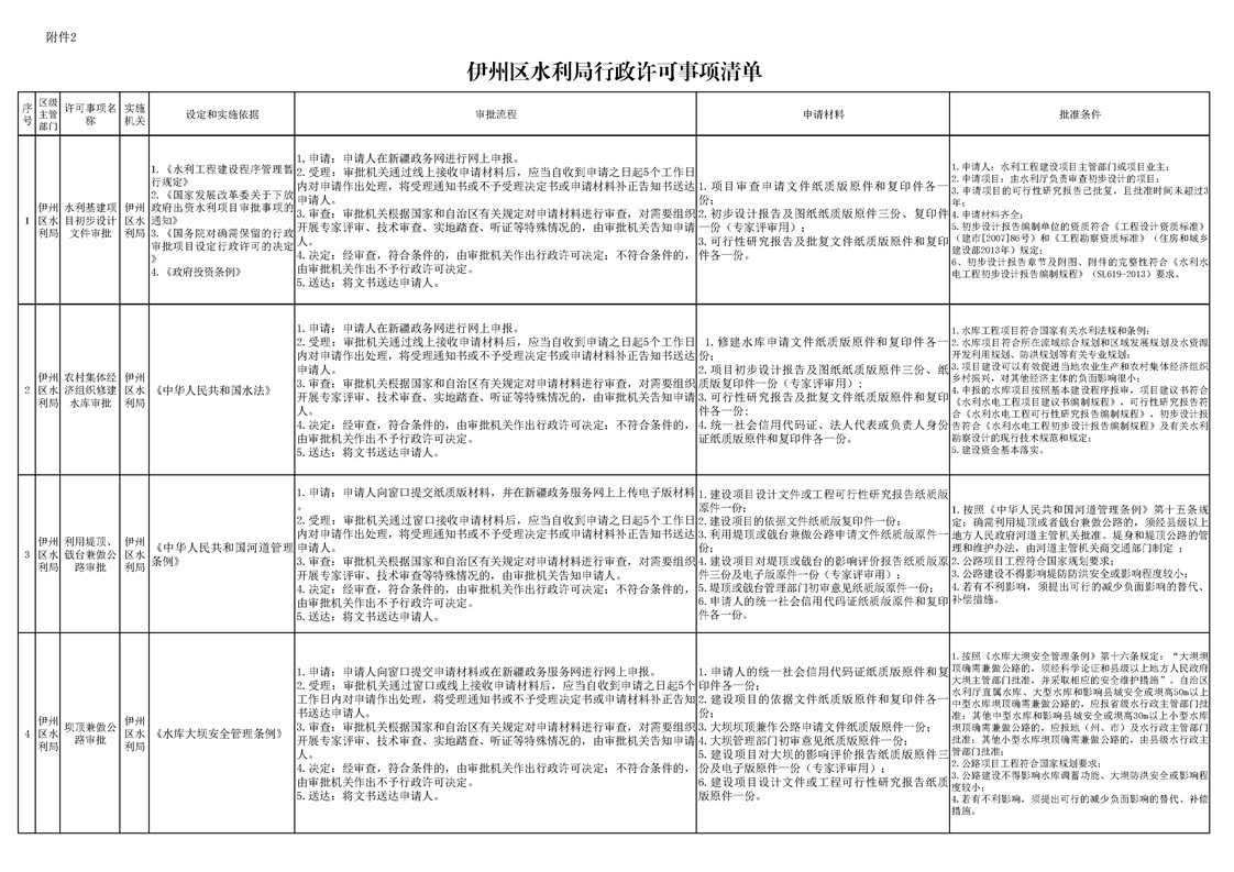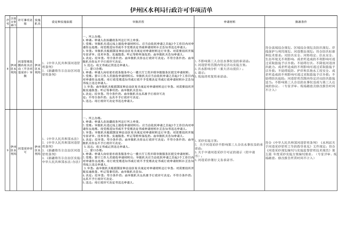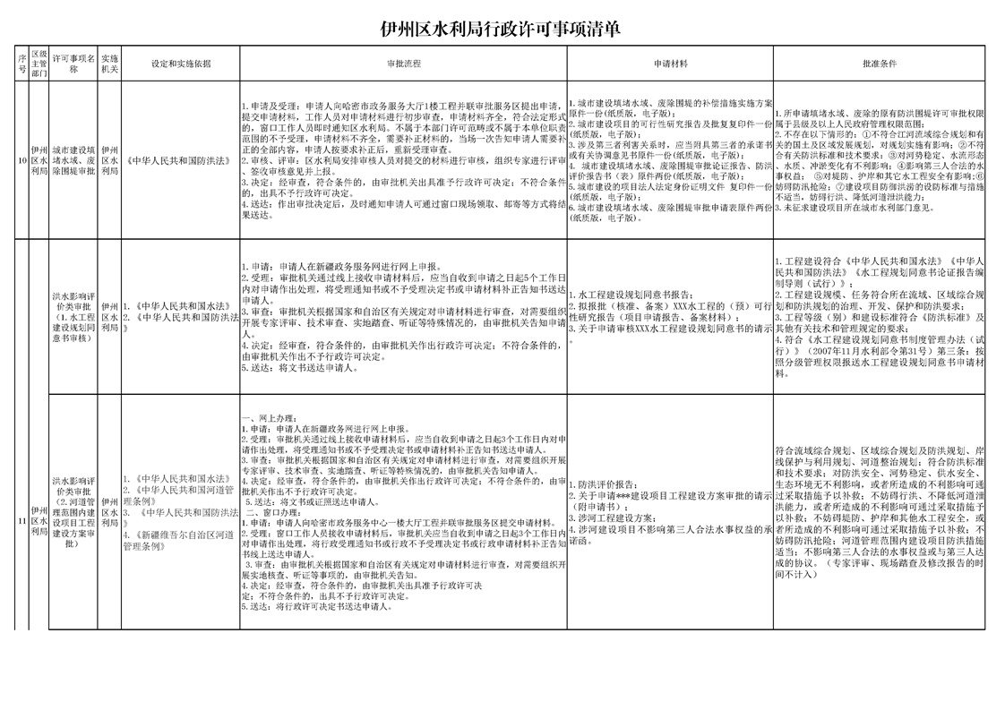 伊州区水利局行政许可事项清单