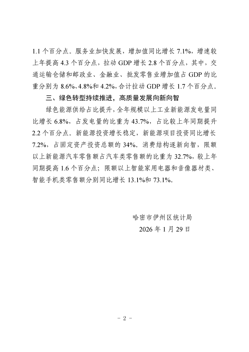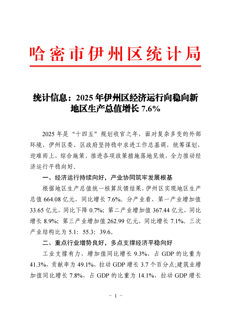 统计信息:2025年伊州区经济运行向稳向新 地区生产总值增长7.6%