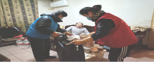 在朝阳社区,有这样一户家庭:母亲患病常年卧床,儿子自幼患小儿麻痹症,行动不便,生活无法自理。没有亲人照料,家庭收入也不高,母子俩的生活十分艰难。社区志愿者了解到一家人的困境后,李权萍、常翠兰、文玉华、陈万华四位志愿者挺身而出,组成帮扶小队,对母子俩开展长期帮扶。