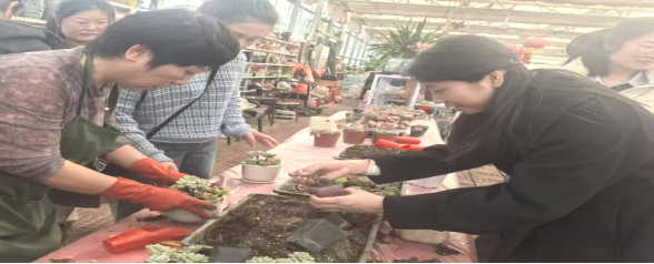 阳春三月,芳菲正好。在第116个“三八”国际劳动妇女节来临之际,为进一步关心关爱女性干部职工,丰富精神文化生活,舒缓工作压力,营造温馨和谐、积极向上的节日氛围,石油新城街道精心组织全体女性干部走进本地特色花卉市场,开展“指尖绿意 慢享时光”妇女节主题多肉种植活动,让大家在春意盎然的环境中亲近自然、动手创作,共度一段轻松惬意、充满绿意的美好时光。