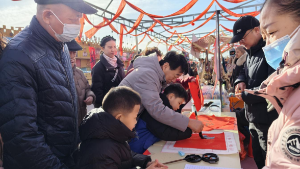 活动现场化身为一个大型的互动乐园。居民们以团队形式穿梭于各个活动点位之间,剪窗花寄托“剪春纳福”的巧思、绘制团扇展现雅致情趣、泼墨挥毫书写吉祥春联、开动脑筋竞猜趣味灯谜,每成功完成一个环节,参与者便能收获象征祝福的“银票”与探寻“年兽”的线索。大家手持“银票”,比对线索,在热闹的市集中细心寻找“年兽”踪迹,欢笑声与讨论声此起彼伏。整个市集区域人流如织,特色美食、民俗体验与便民服务等摊位前都聚满了兴致勃勃的居民,一场场充满活力的快闪舞蹈更将现场喜庆气氛推向高潮,处处洋溢着红火欢乐的年节氛围。