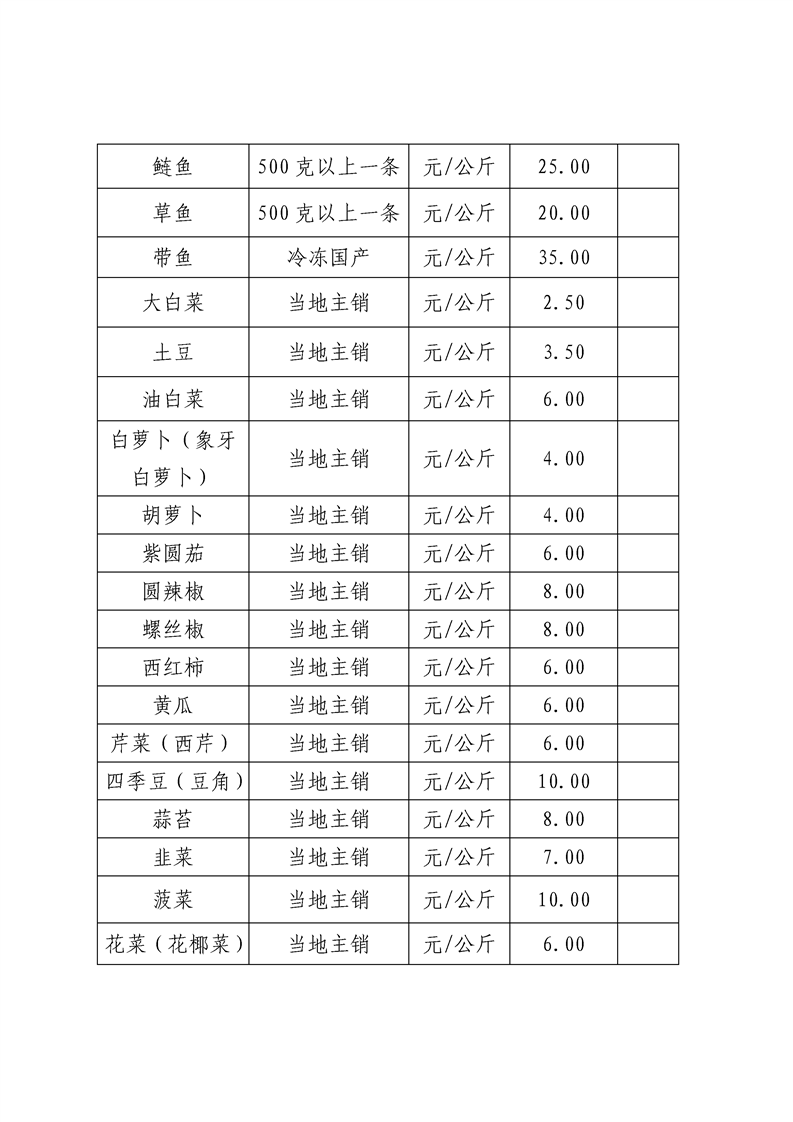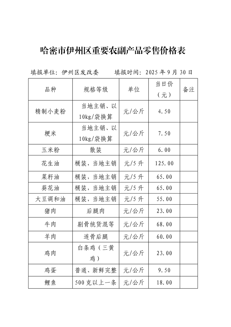 哈密市伊州区重要农副产品零售价格表