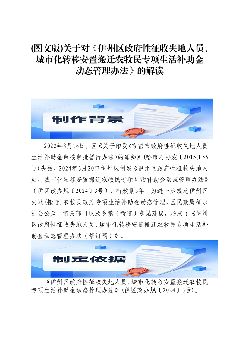 (图文版)关于对《伊州区政府性征收失地人员 城市化转移安置搬迁农牧民专项生活补助金动态管理办法》的解读