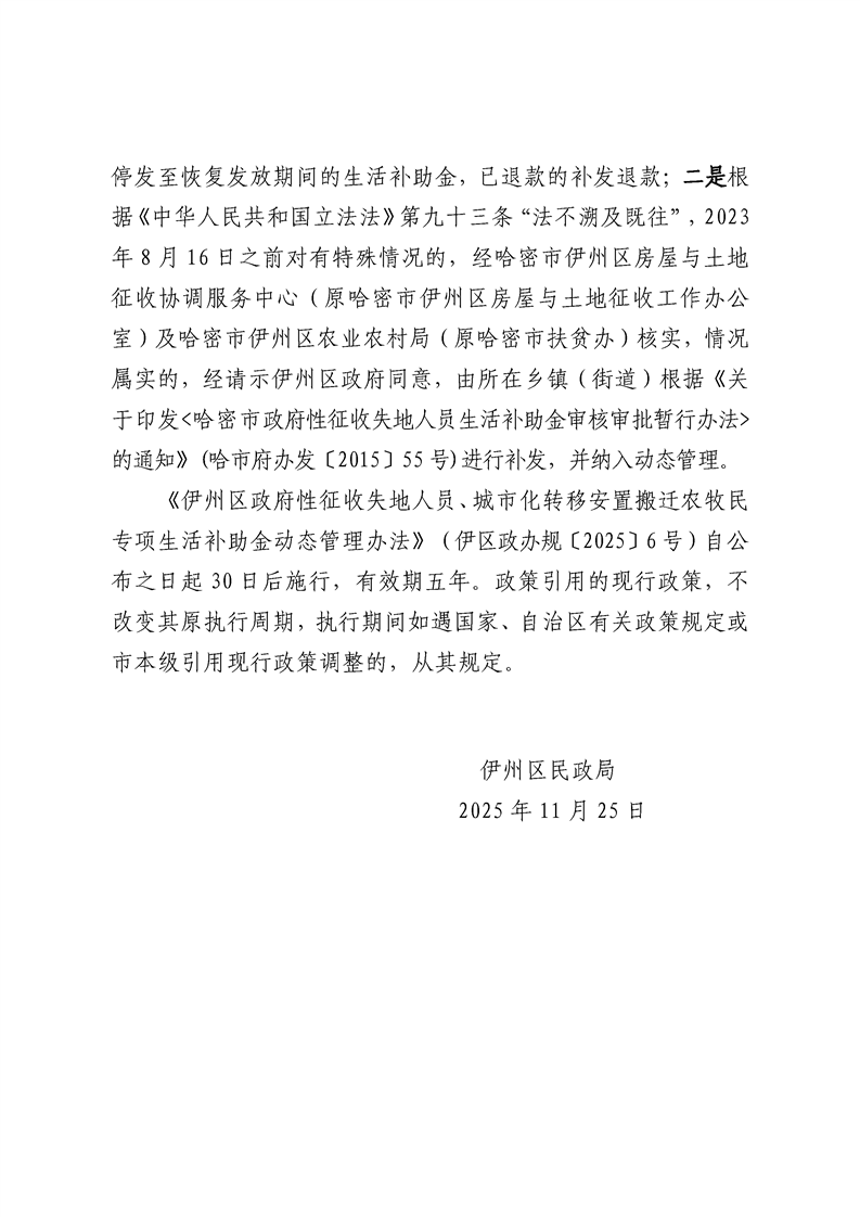 伊区政办规〔2025〕6号 关于印发《伊州区政府性征收失地人员城市...