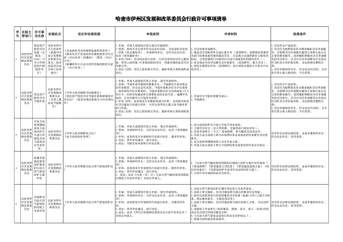 哈密市伊州区发展和改革委员会行政许可事项清单